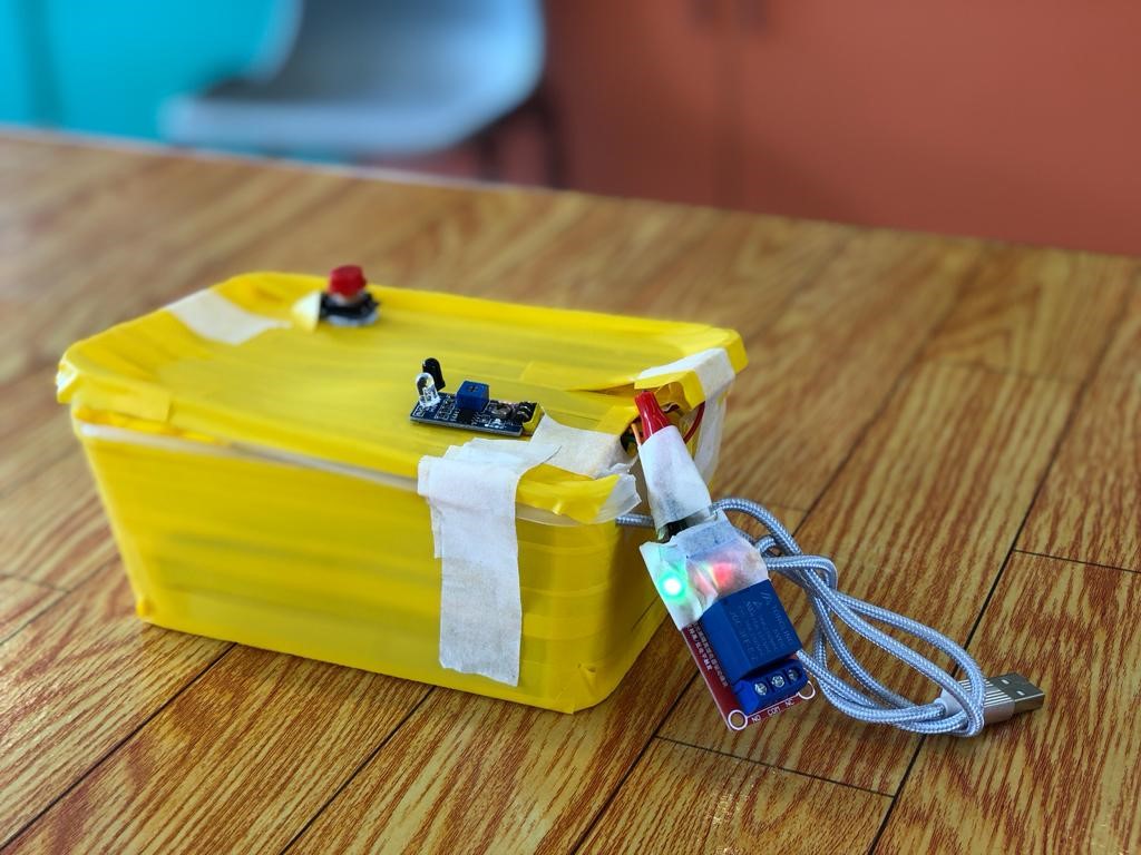 - 感應器放置在門口附近,外出時會發出音效,提醒配戴口罩及進行消毒
