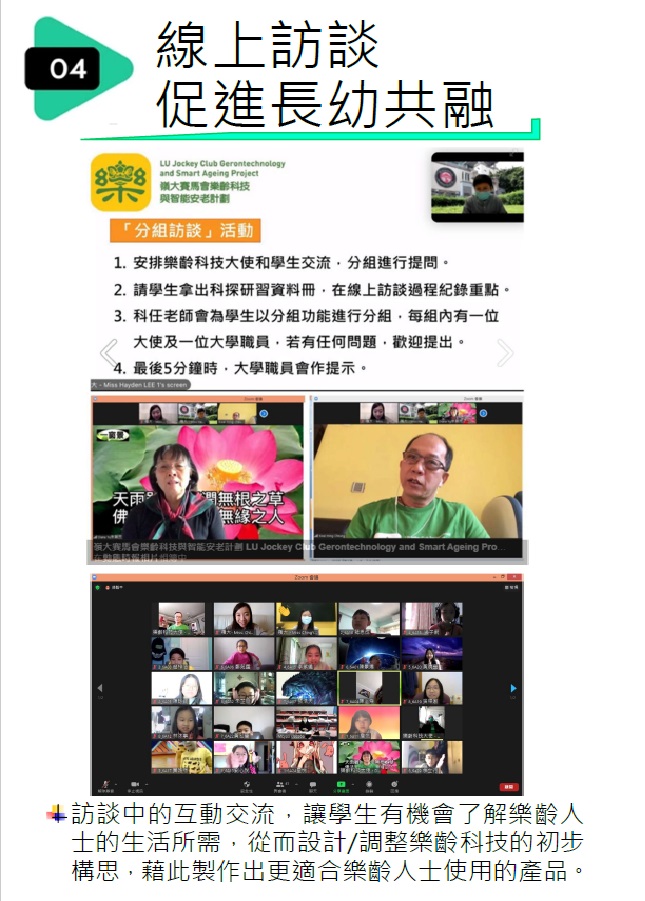- 學生在訪談後知道部分長者在選擇遊戲時多以訓練自己不同能力為主。