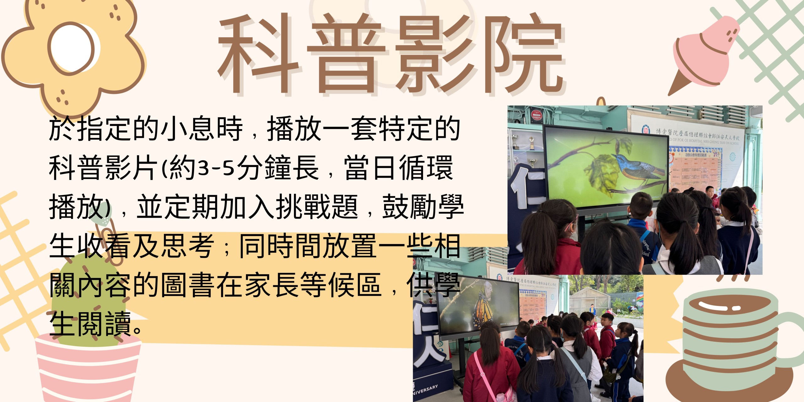 3. 於小息及午息時段推行「STEAM學習‧在任安」計劃,讓學生善用學校每個空間,在活動中學習STEAM及自然科學。