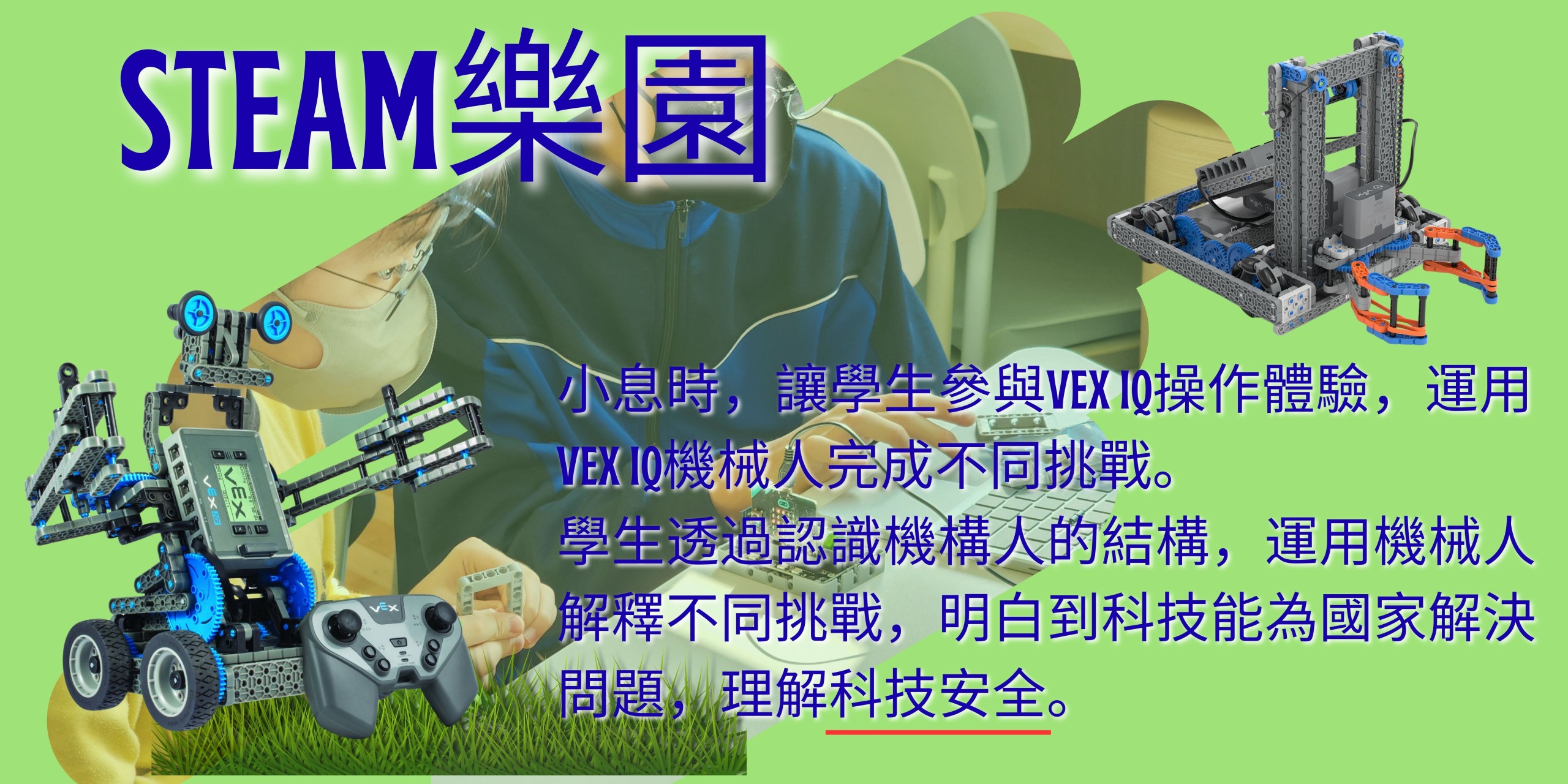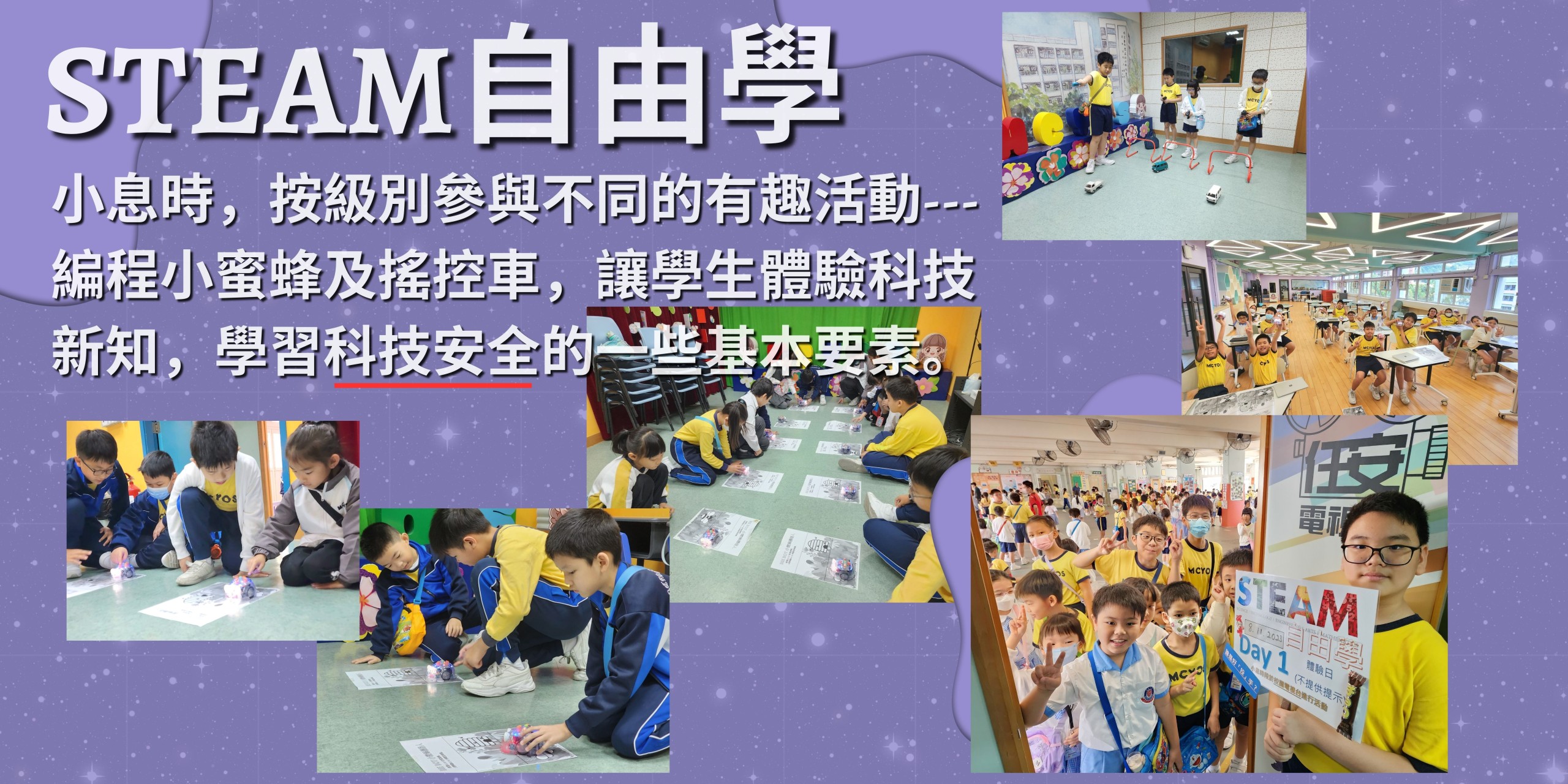1. 本校積極搜羅各項機械人、編程、解難課後興趣班予同學參與,亦於校內舉行STEAM學習日、以及與中學合作進行STEAM體驗活動;